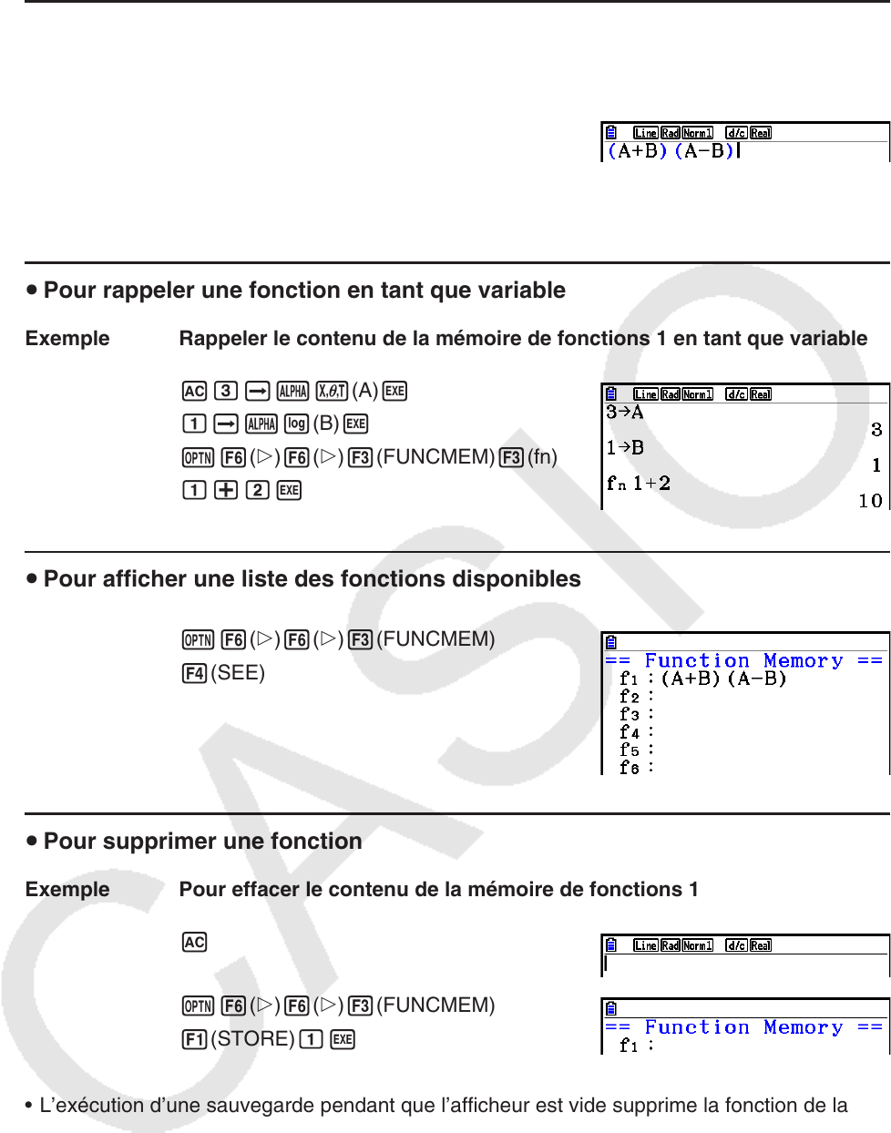 Exemple Rappeler le contenu de la mémoire de fonctions 1