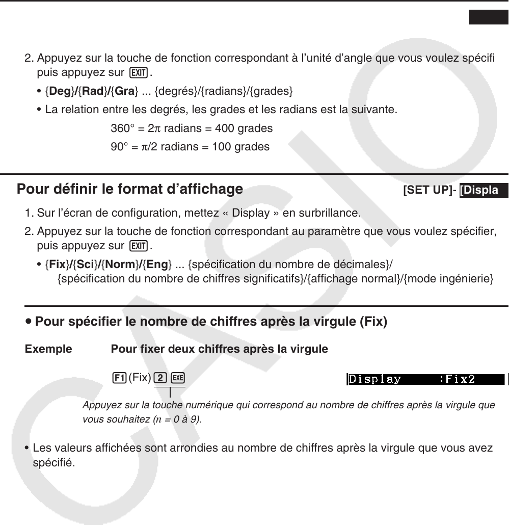 k Pour définir l’unité d’angle [SET UP] - [Angle]
