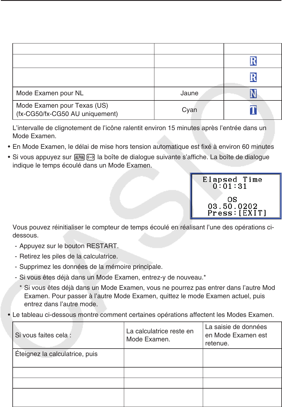 - Si vous êtes déjà dans un Mode Examen, entrez-y de nouveau.*