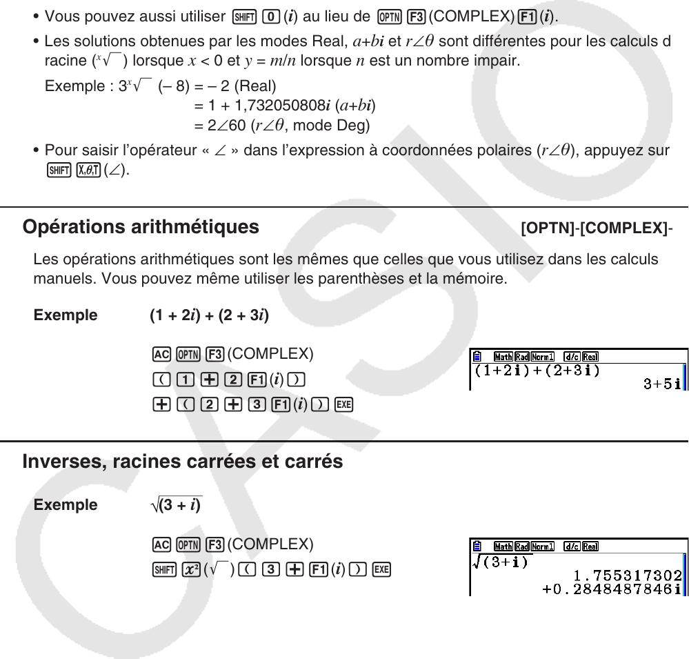k Opérations arithmétiques   [OPTN]  -  [COMPLEX]  -  [  i ]