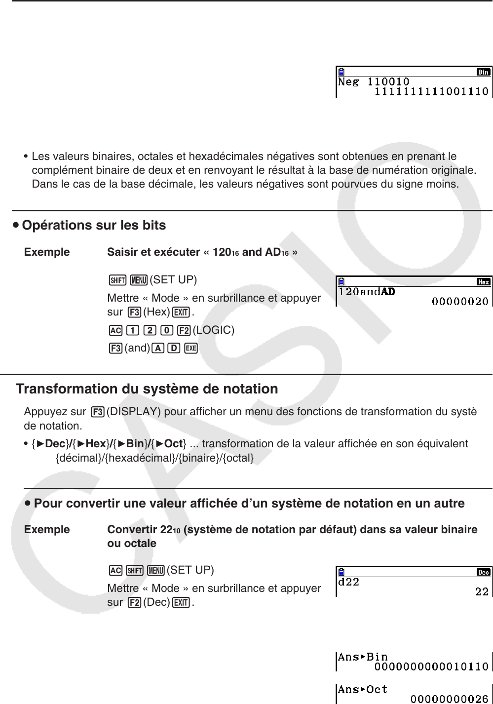 • Les valeurs binaires, octales et hexadécimales négatives sont obtenues en prenant le