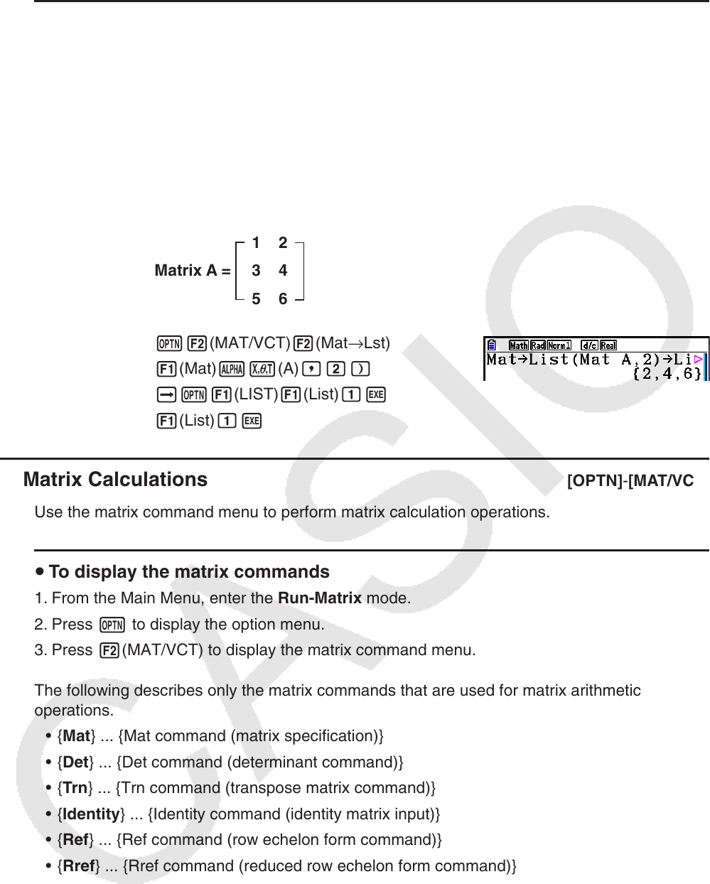 k Matrix Calculations   [OPTN]  -  [MAT/VCT]