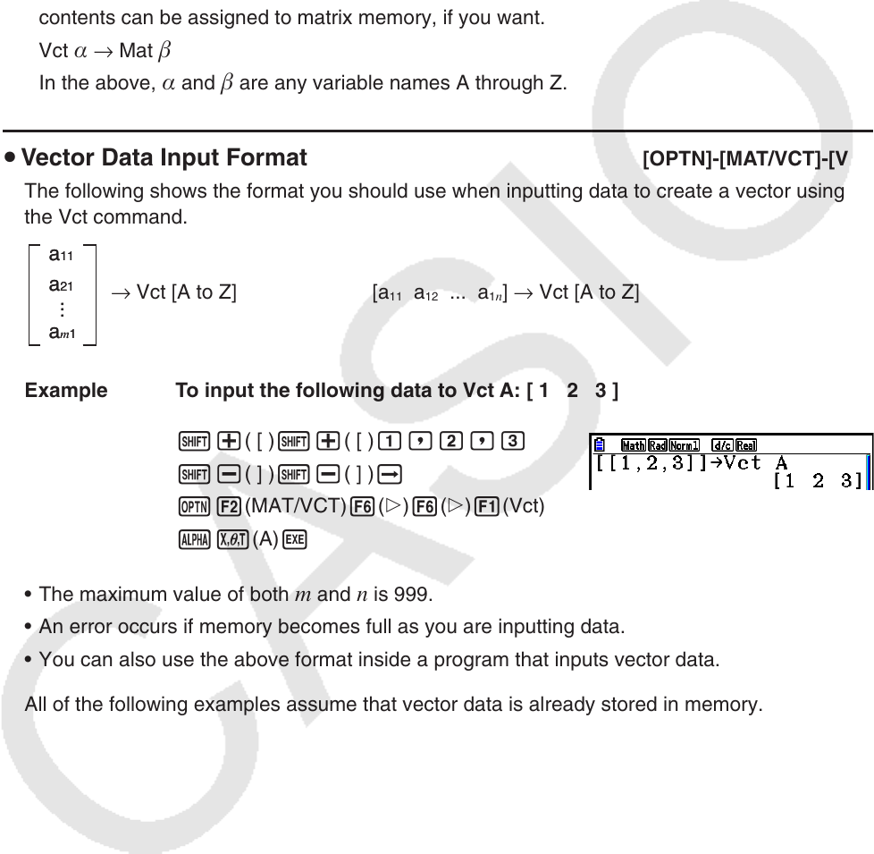 u Vector Data Input Format [OPTN]-[MAT/VCT]-[Vct]