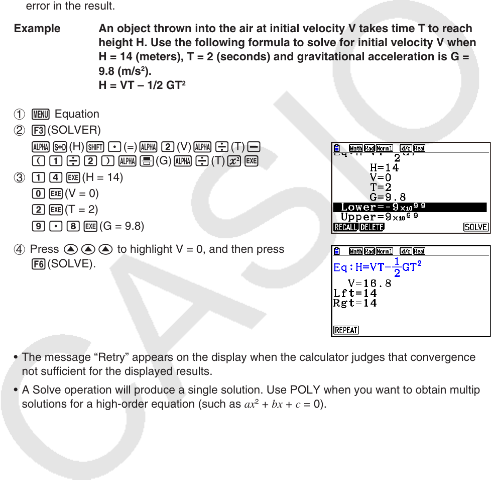 • The message “Retry” appears on the display when the calculator judges that convergence is