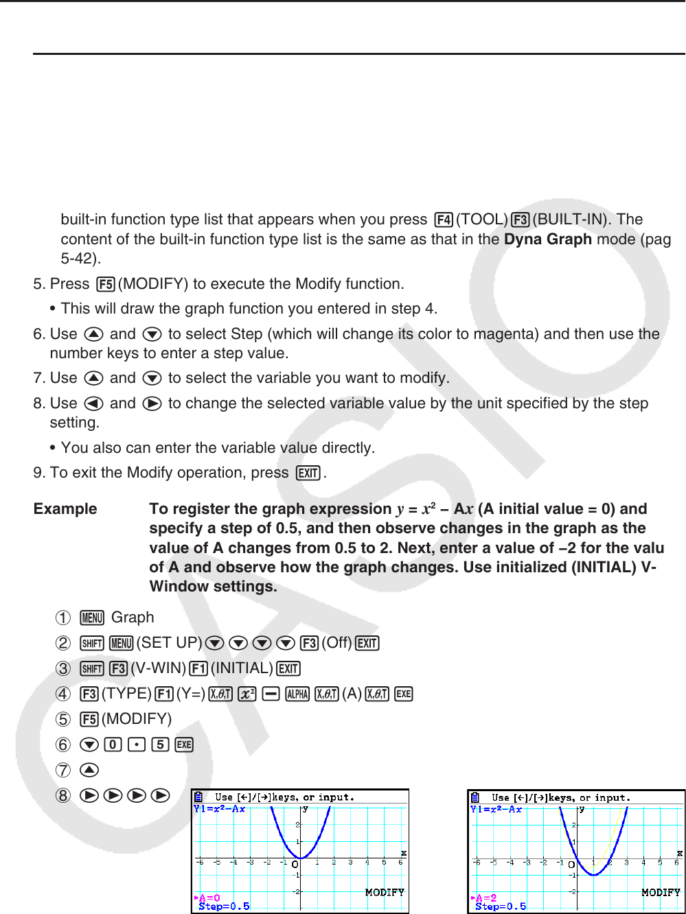 of A and observe how the graph changes. Use initialized (INITIAL) V-