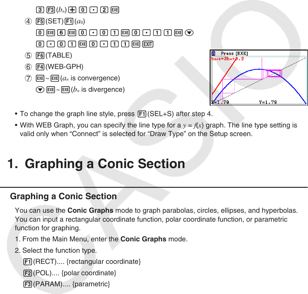 1. From the Main Menu, enter the Conic Graphs mode.