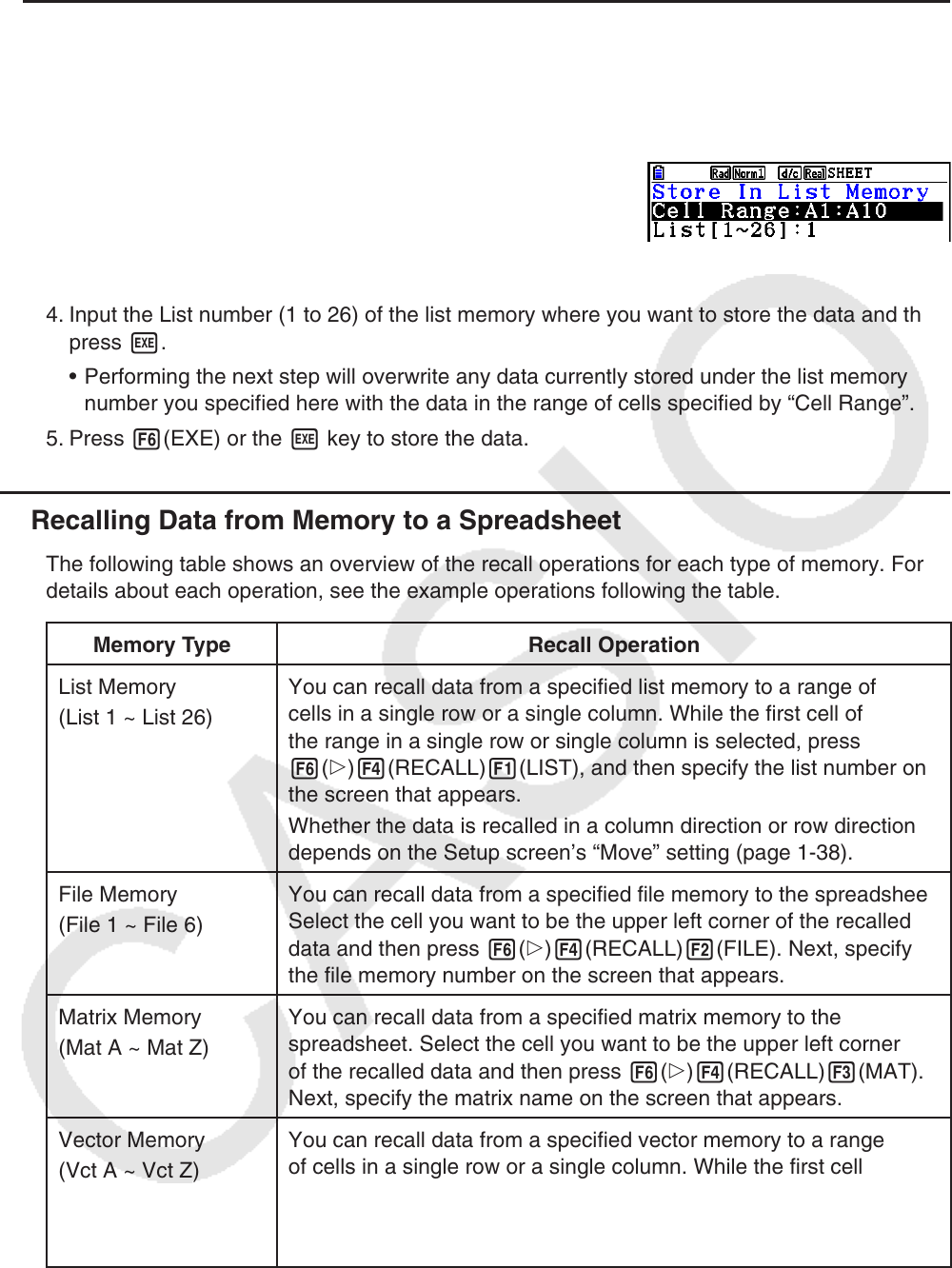 5. Press 6(EXE) or the w key to store the data.