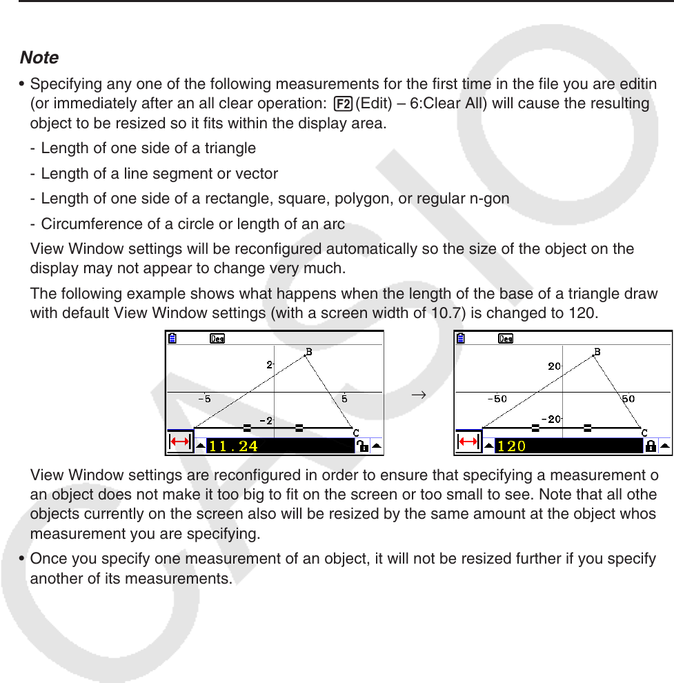 View Window settings are reconfigured in order to ensure that specifying a measurement of