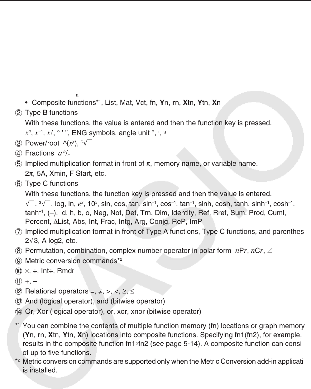7 Implied multiplication format in front of Type A functions, Type C functions, and parenthesis.