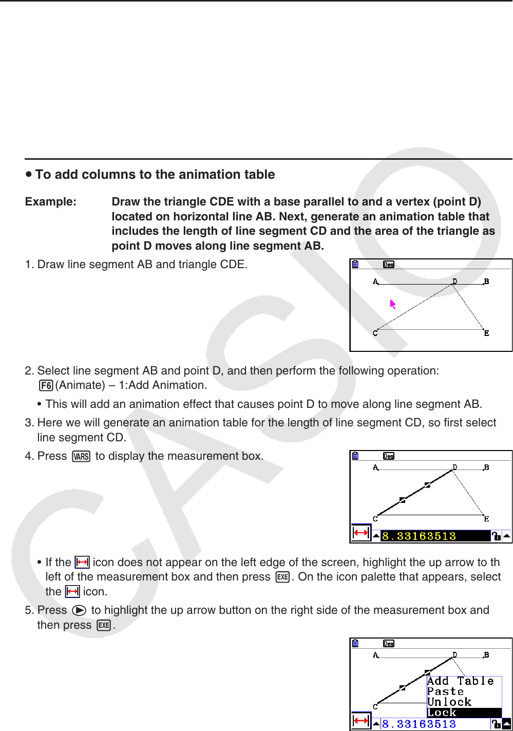 • This will add an animation effect that causes point D to move along line segment AB.