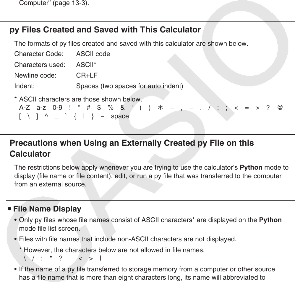 py files you create in the Python mode are stored in the calculator’s storage memory (with
