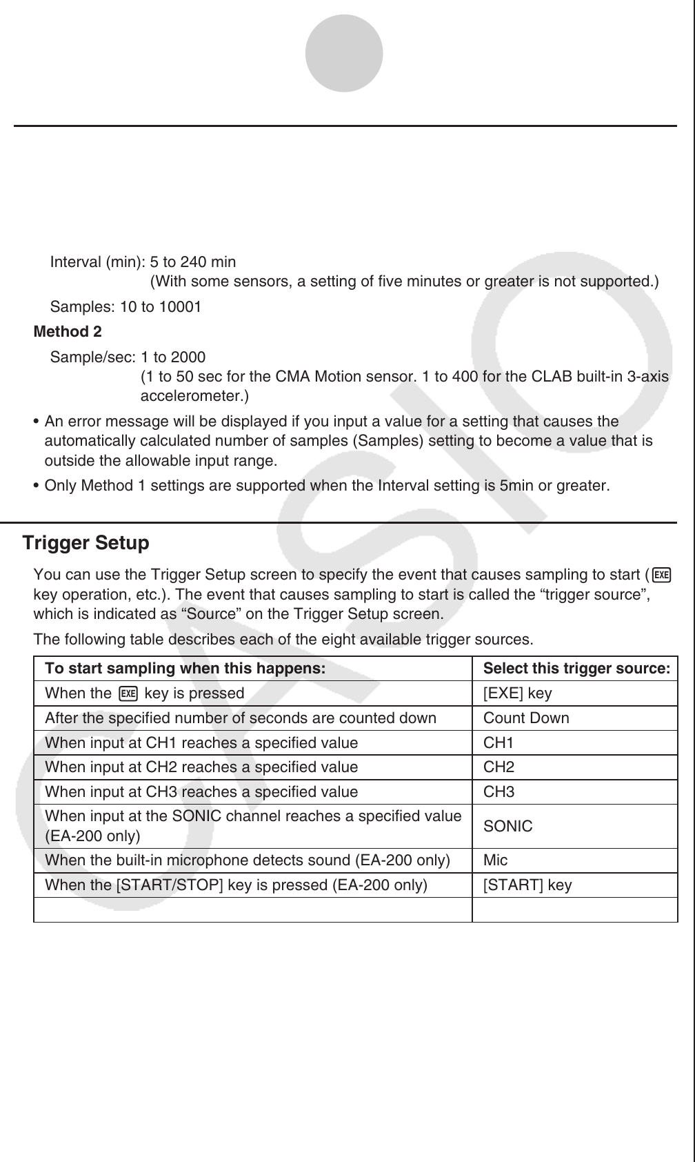key operation, etc.). The event that causes sampling to start is called the “trigger source”,