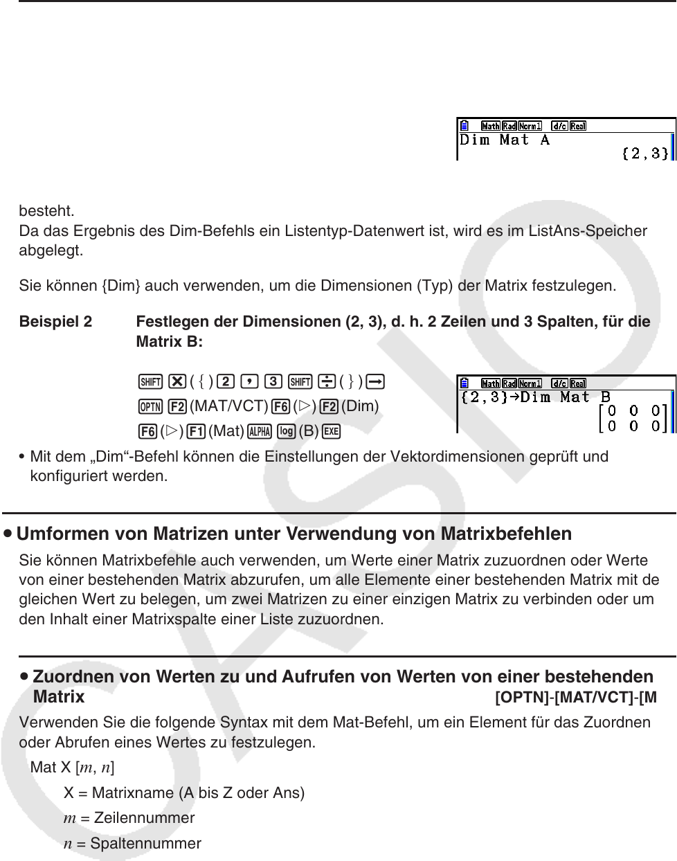 u Abfrage der Dimensionen einer Matrix [OPTN] - [MAT/VCT] - [Dim]