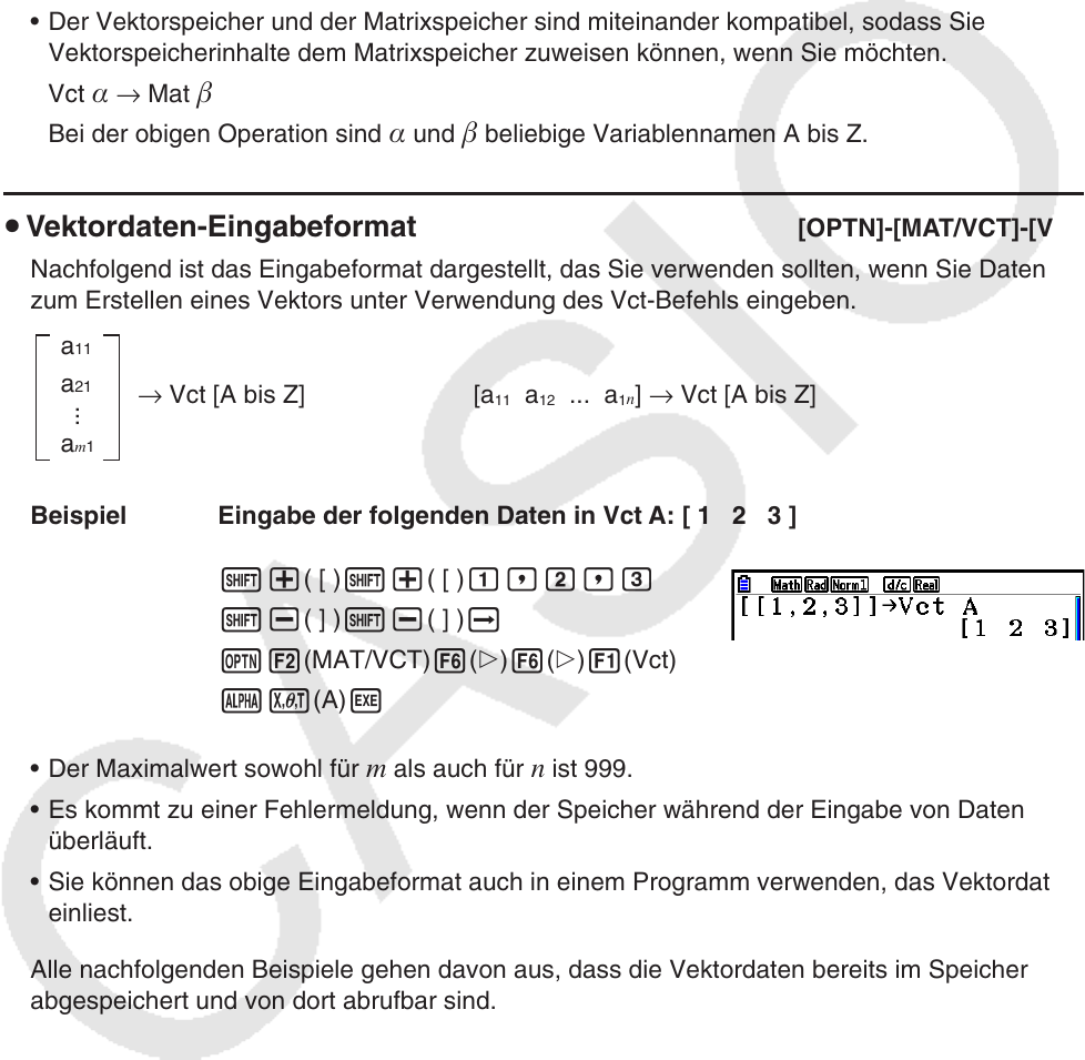 u Vektordaten-Eingabeformat [OPTN]-[MAT/VCT]-[Vct]