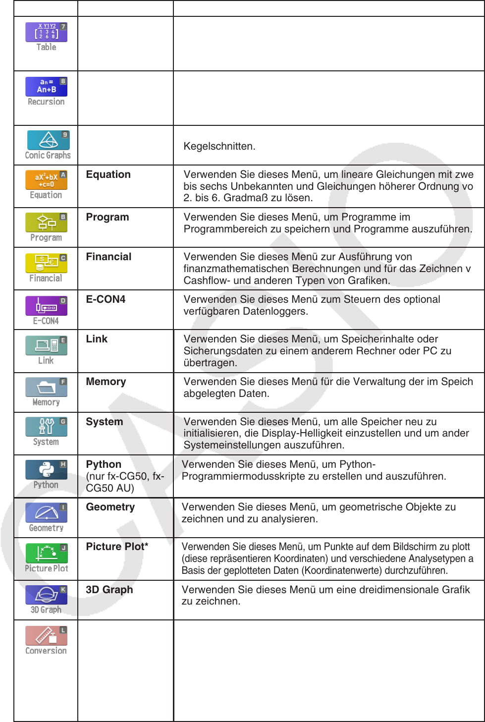 * Benutzer von fx-CG50 AU/fx-CG20 AU: Installieren Sie die Add-in-Applikation Picture Plot.