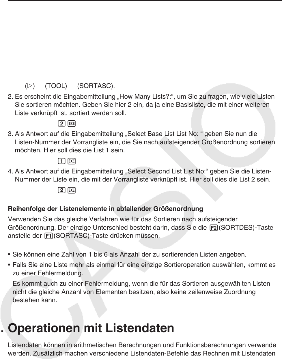 • Falls Sie eine Liste mehr als einmal für eine einzige Sortieroperation auswählen, kommt es
