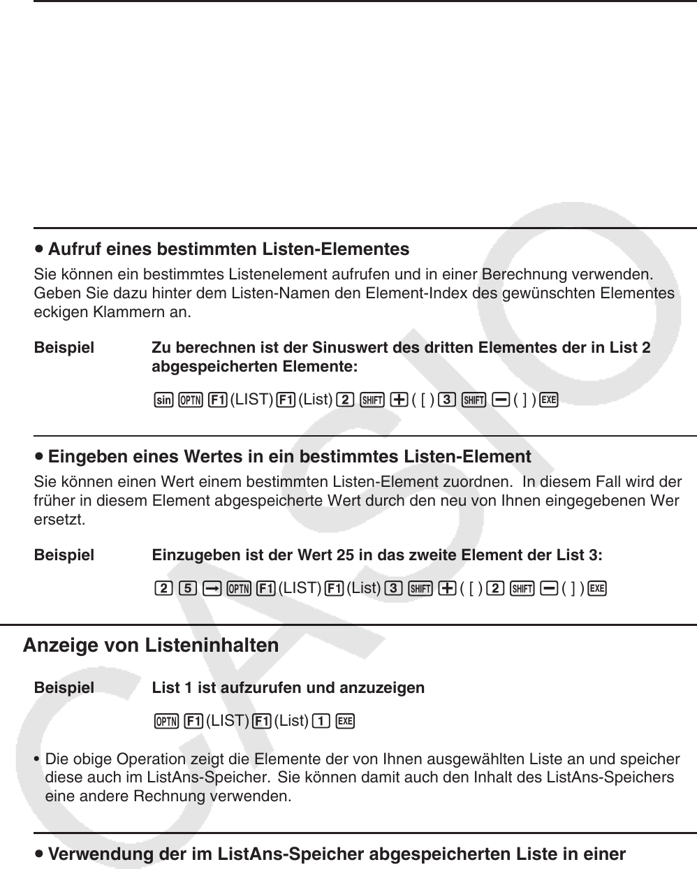 • Die Tastenbetätigung K1(LIST) 1(List) !-(Ans) ruft den Inhalt des ListAns-