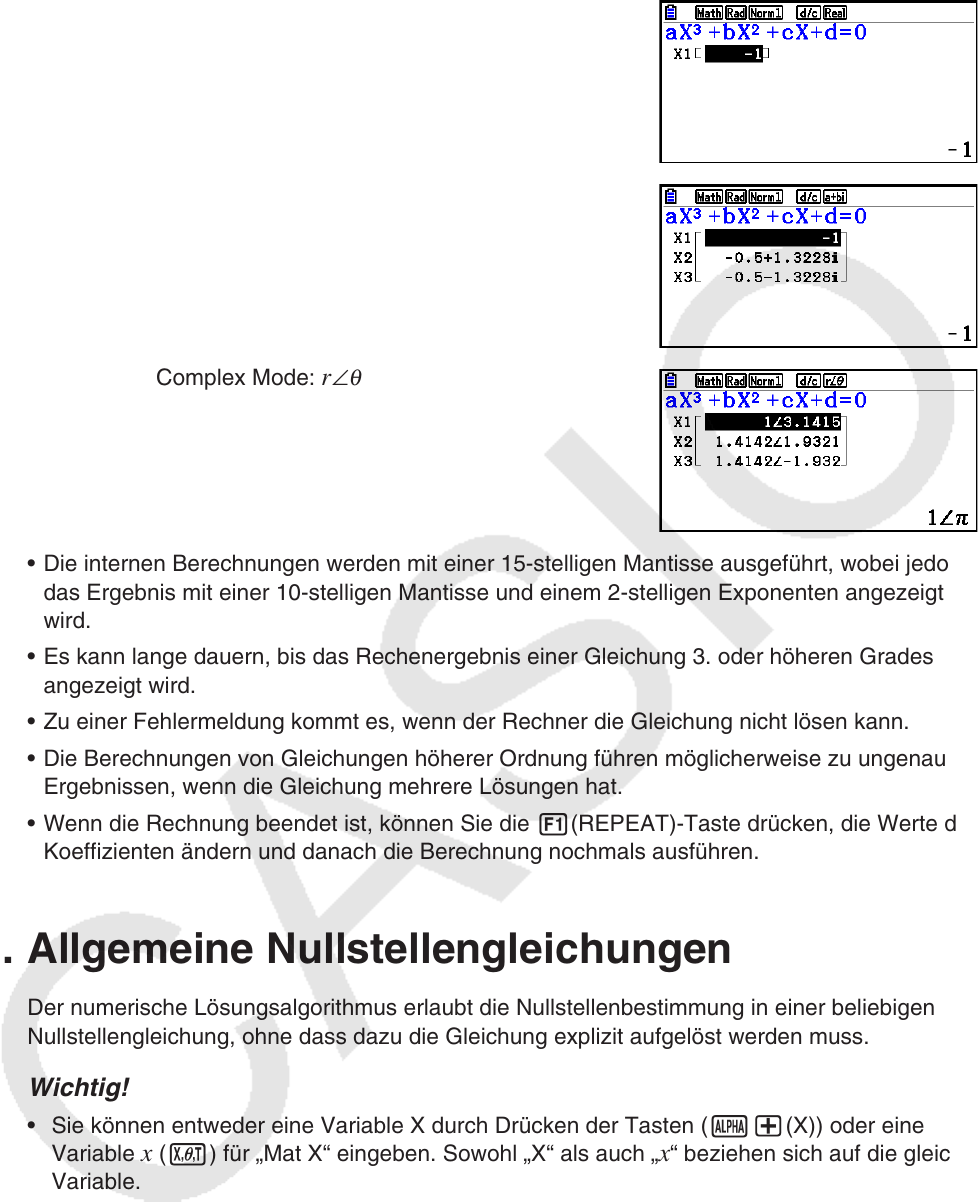• Es kann lange dauern, bis das Rechenergebnis einer Gleichung 3. oder höheren Grades
