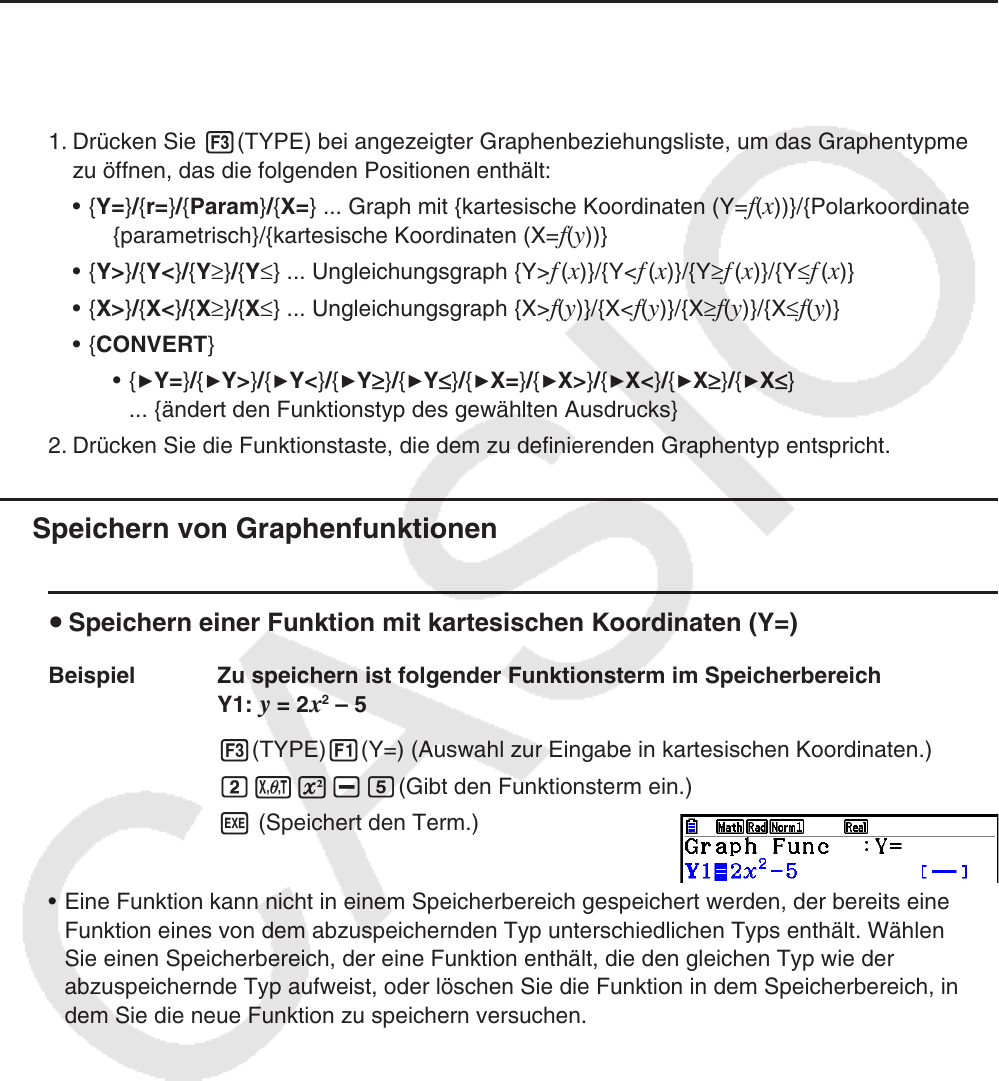 u Speichern einer Funktion mit kartesischen Koordinaten (Y=)