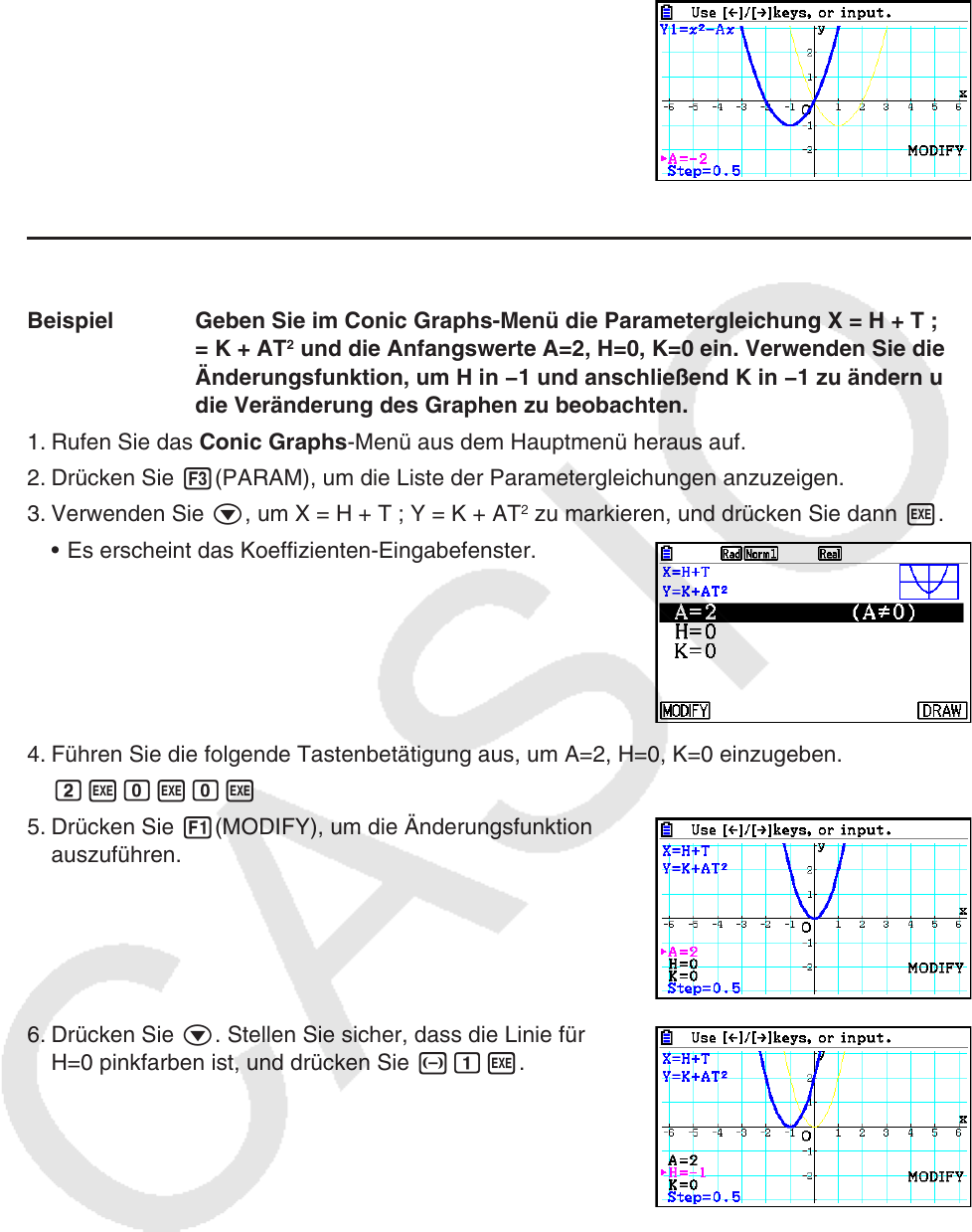 Beispiel Geben Sie im Conic Graphs-Menü die Parametergleichung X = H + T ; Y