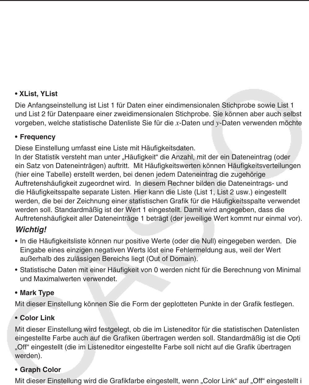 • In die Häufigkeitsliste können nur positive Werte (oder die Null) eingegeben werden. Die