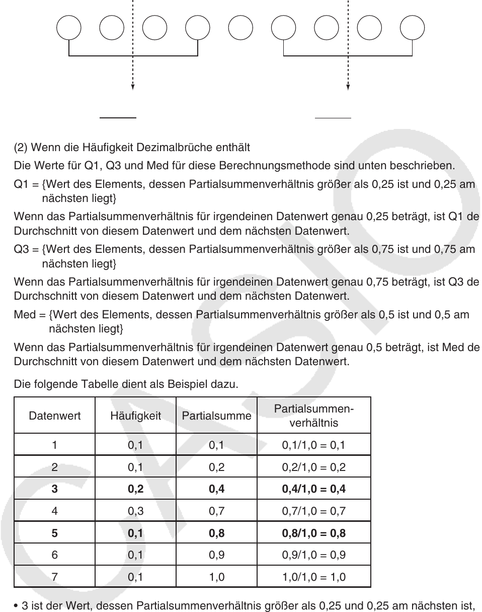 Q3 = {Wert des Elements, dessen Partialsummenverhältnis größer als 0,75 ist und 0,75 am