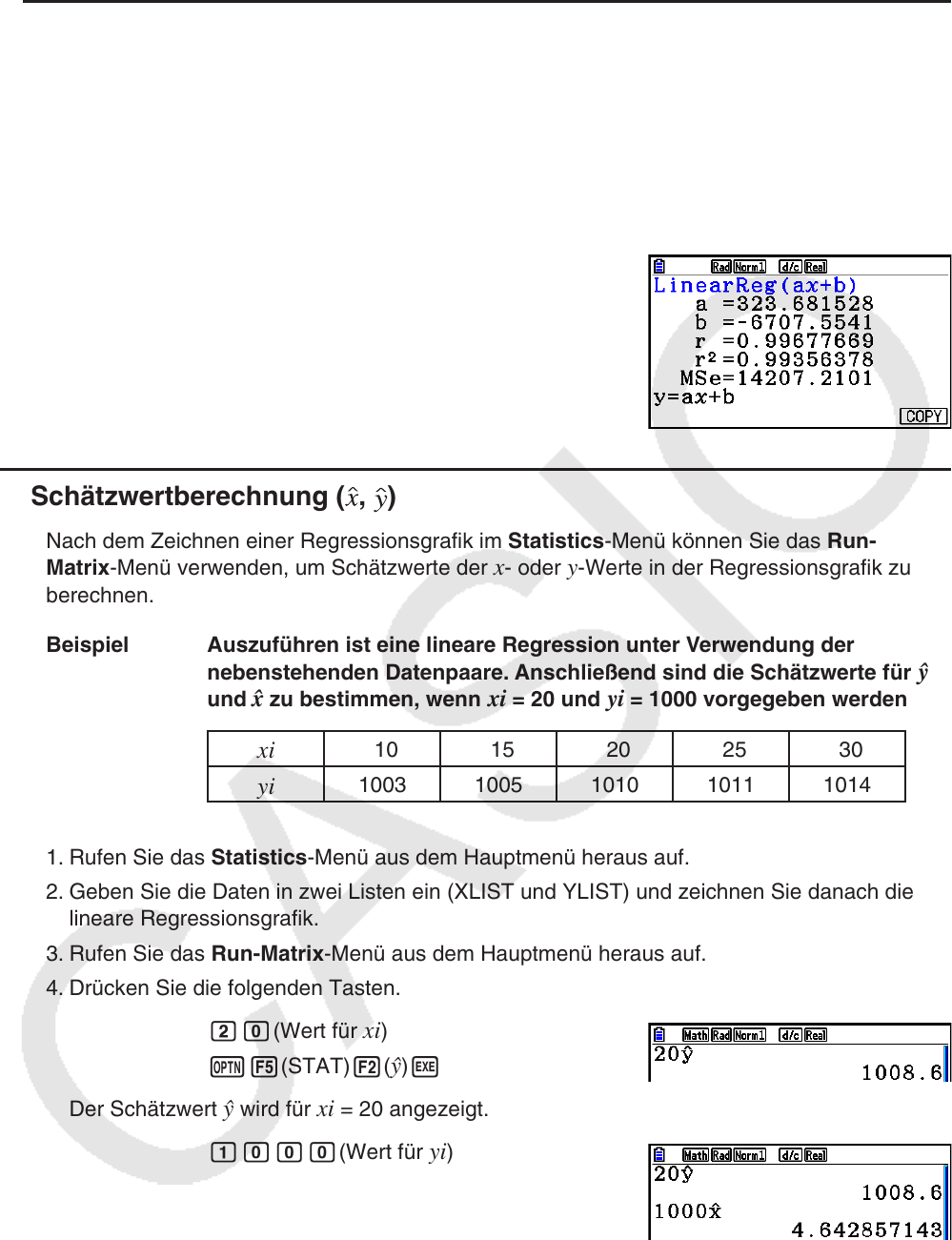 Regressionsformel auch in den Grafik-Funktionsspeicher kopieren können. Um eine erhaltene
