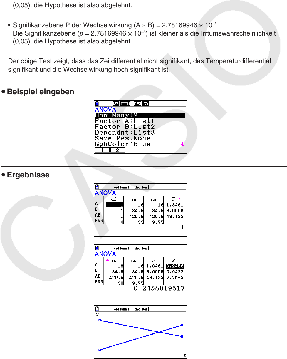 • Signifikanzebene P der Wechselwirkung (A × B) = 2,78169946