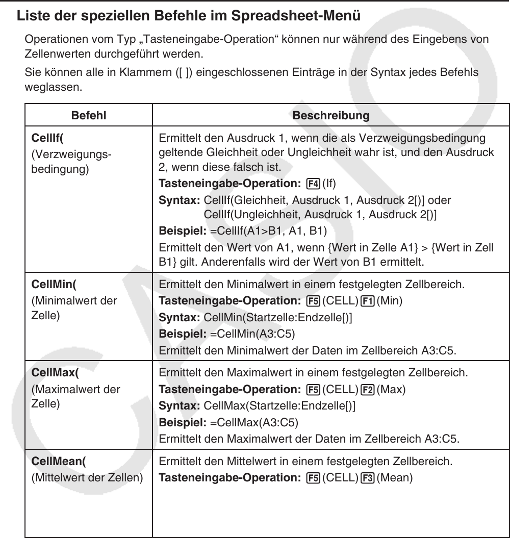 CellSum(, der die Summe eines Bereichs von Zellen ausrechnet, und CellIf(, über den