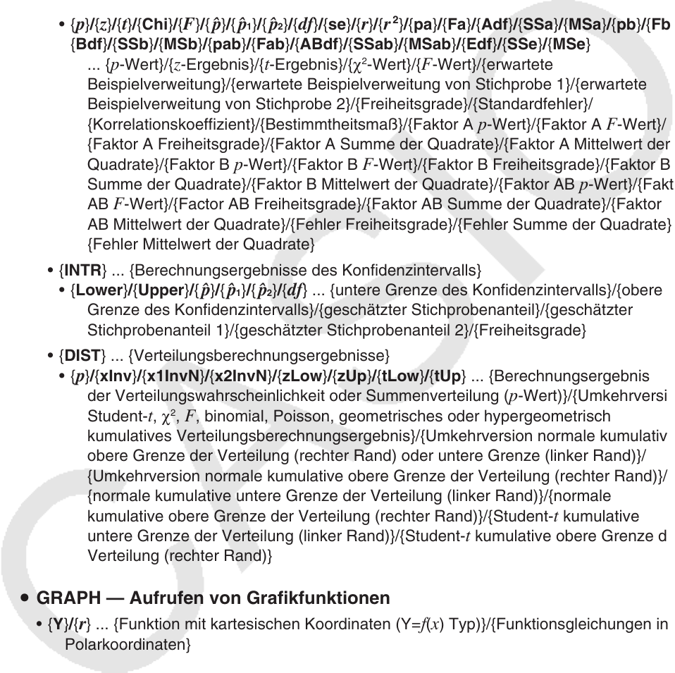 - 8. CASIO-Rechner für wissenschaftliche Funktionswertberechnungen Spezielle Befehle <=> Textkonvertierungstabelle