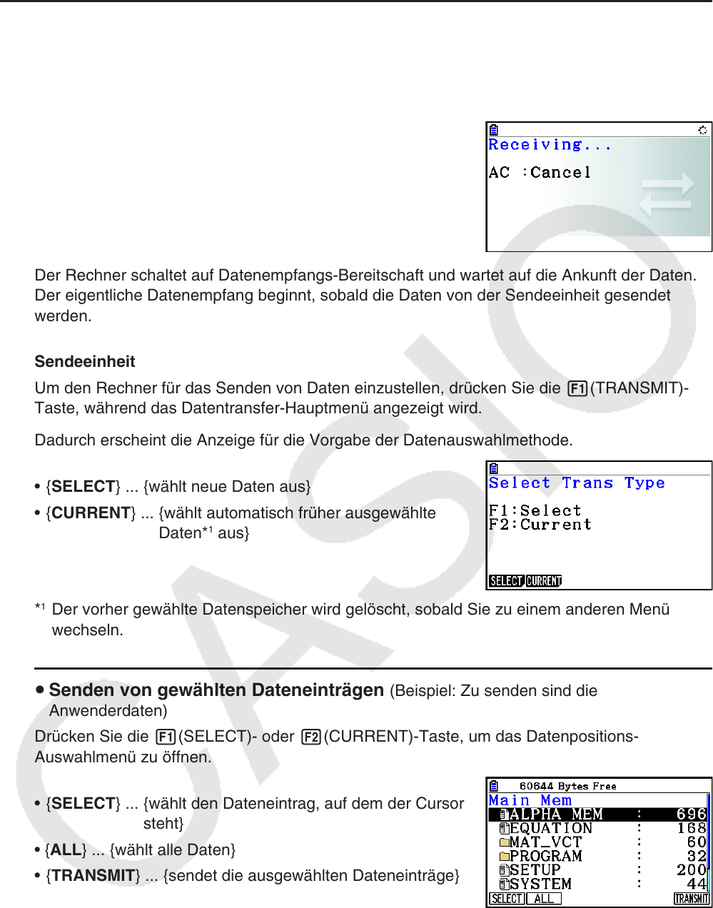 • { TRANSMIT } ... {sendet die ausgewählten Dateneinträge}