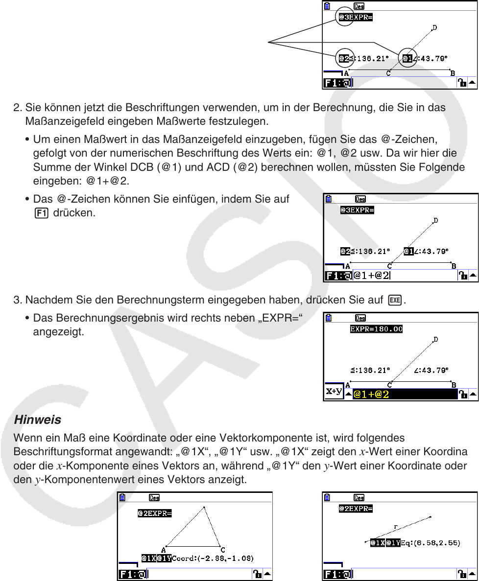 Summe der Winkel DCB (@1) und ACD (@2) berechnen wollen, müssten Sie Folgendes