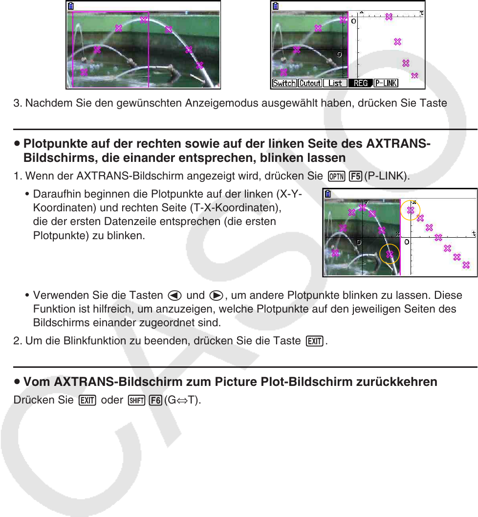 • Verwenden Sie die Tasten d und e, um andere Plotpunkte blinken zu lassen. Diese