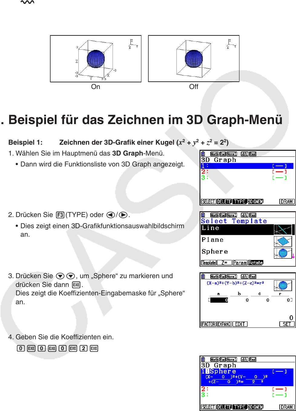 • {On}/{Off} ... {3D-Graph-Bildschirm Achsennamen anzeigen}/{3D-Graph-Bildschirm