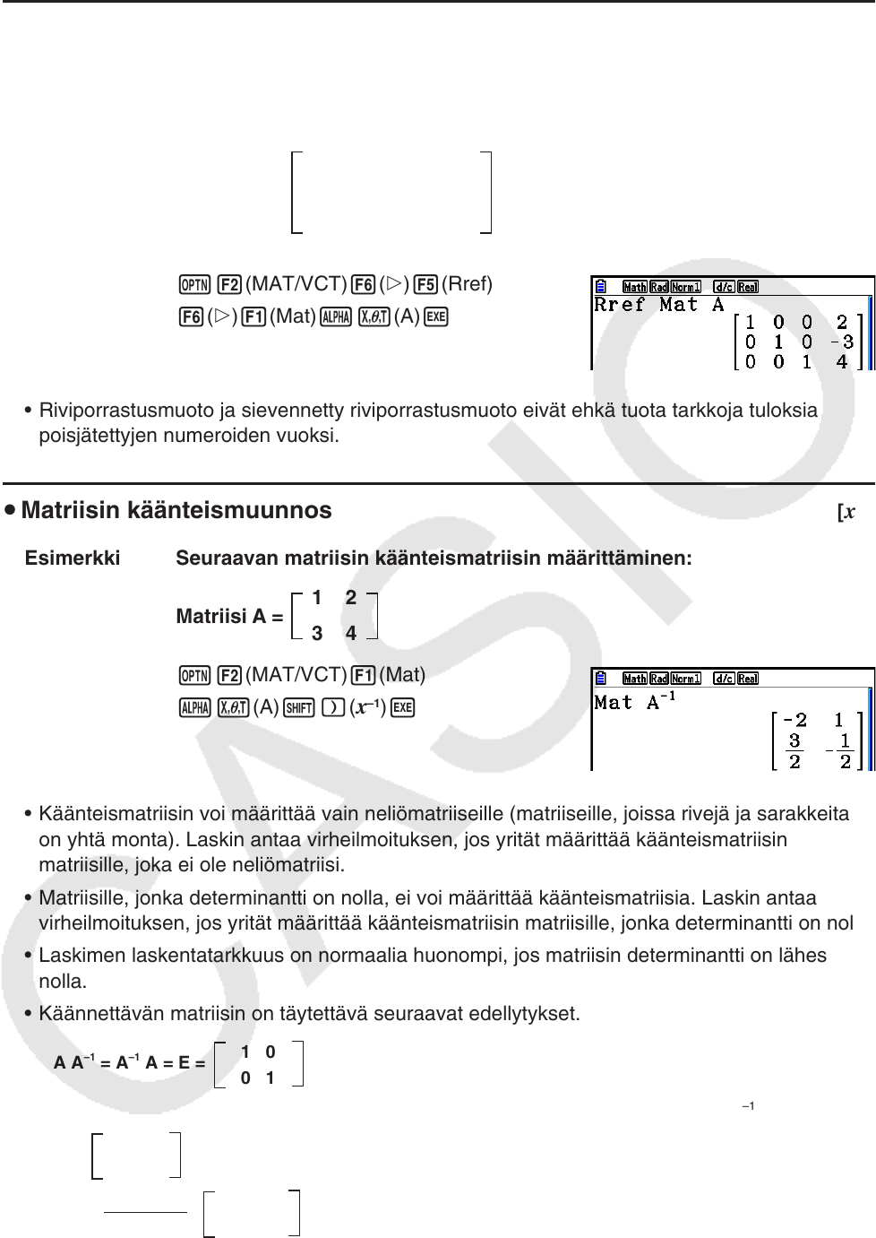 on yhtä monta). Laskin antaa virheilmoituksen, jos yrität määrittää käänteismatriisin