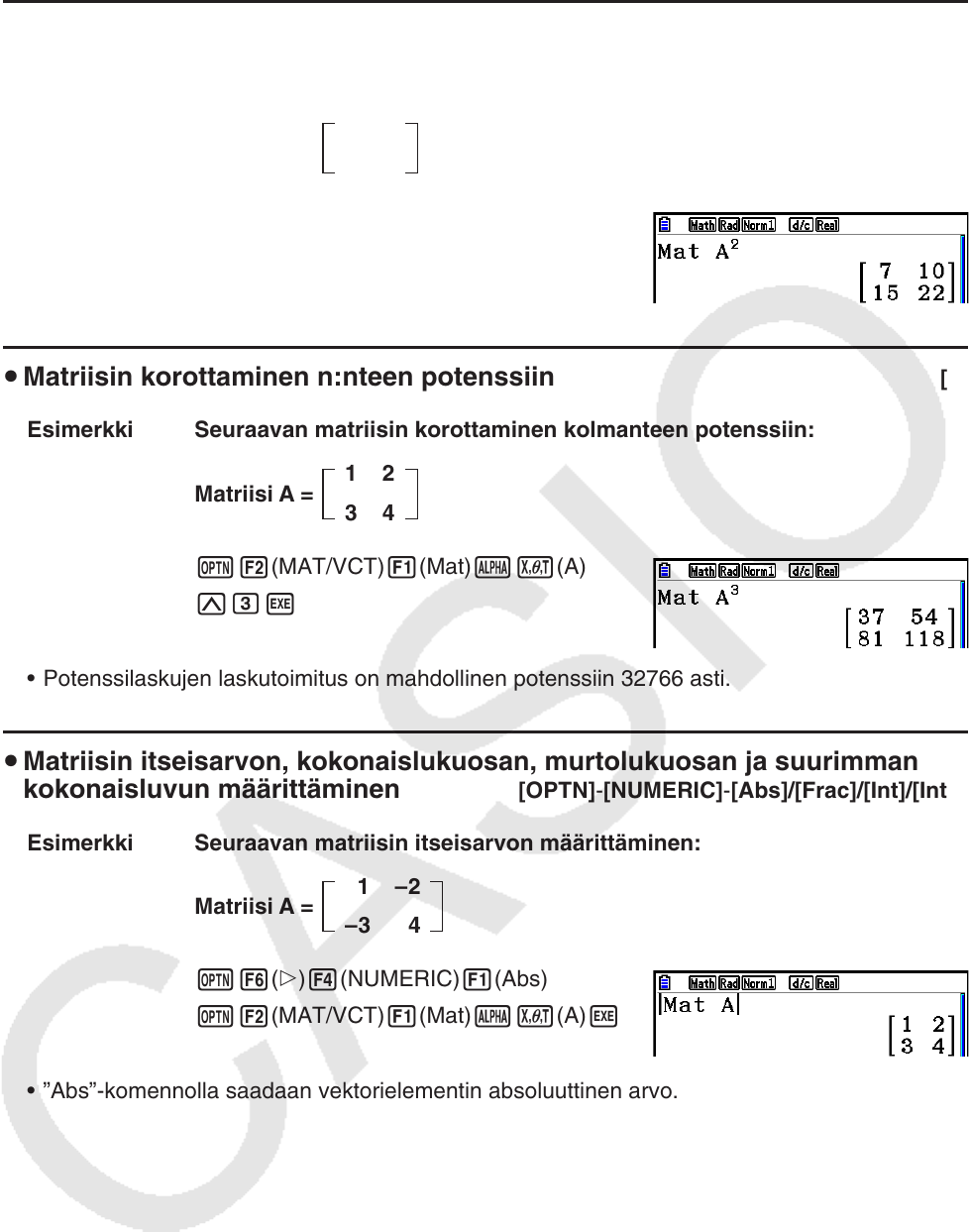 • Potenssilaskujen laskutoimitus on mahdollinen potenssiin 32766 asti.