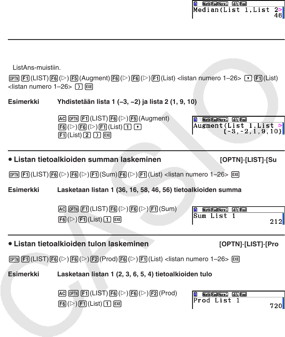 u Listojen yhdistäminen [OPTN] - [LIST] - [Augment]