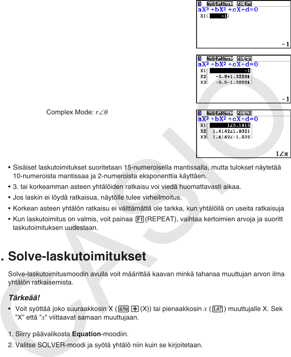 • Jos laskin ei löydä ratkaisua, näytölle tulee virheilmoitus.