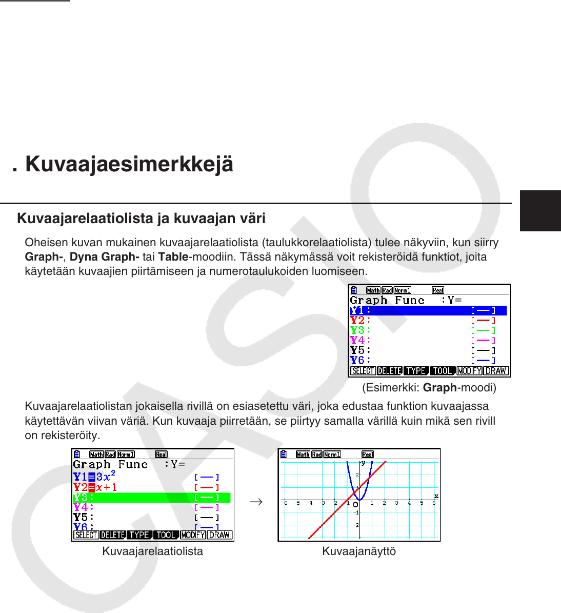 Kuvaajarelaatiolistan jokaisella rivillä on esiasetettu väri, joka edustaa funktion kuvaajassa