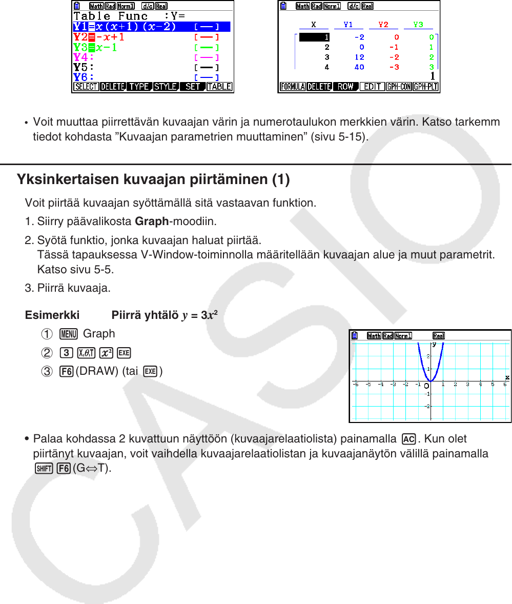 • Voit muuttaa piirrettävän kuvaajan värin ja numerotaulukon merkkien värin. Katso tarkemmat