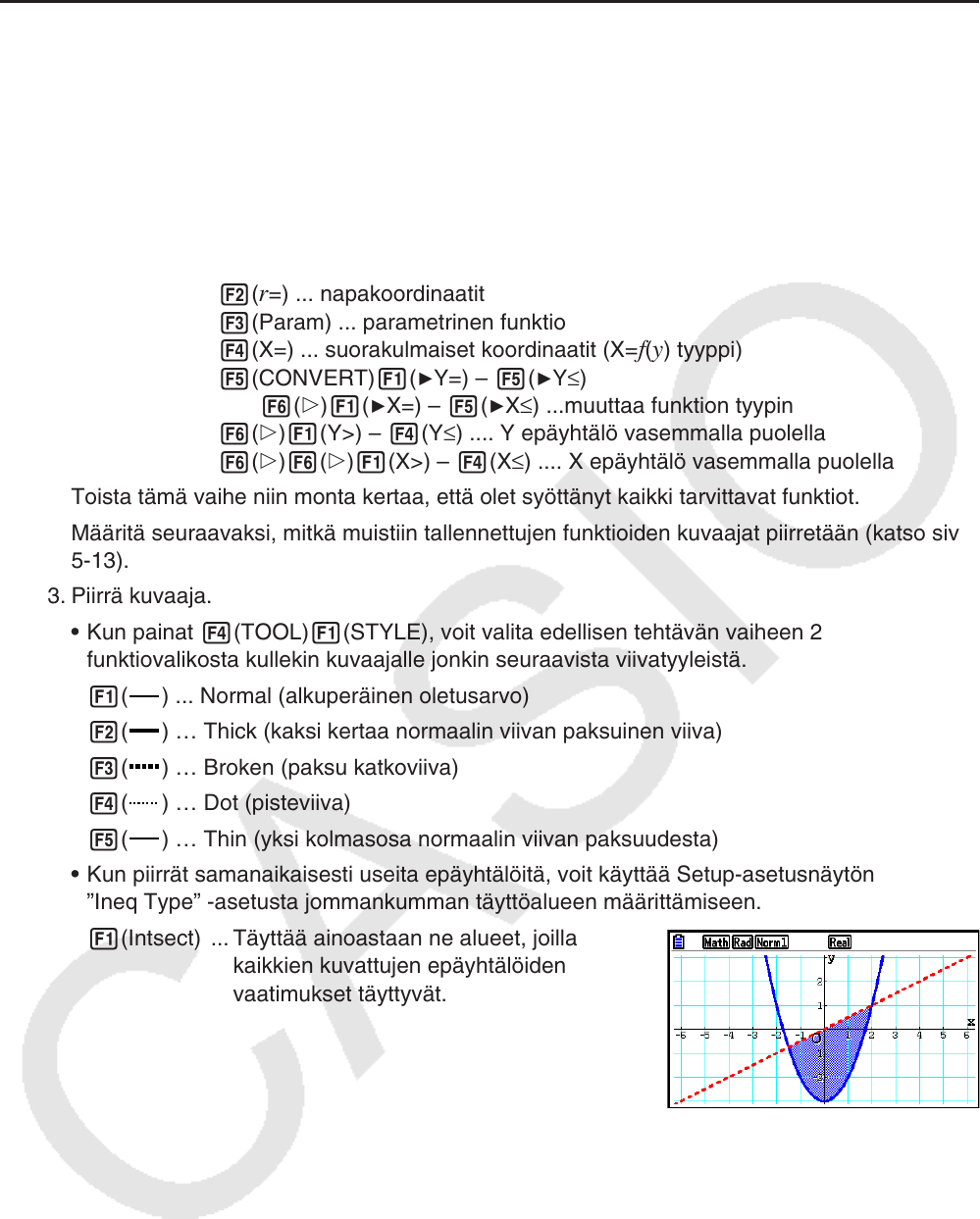 • Kun piirrät samanaikaisesti useita epäyhtälöitä, voit käyttää Setup-asetusnäytön