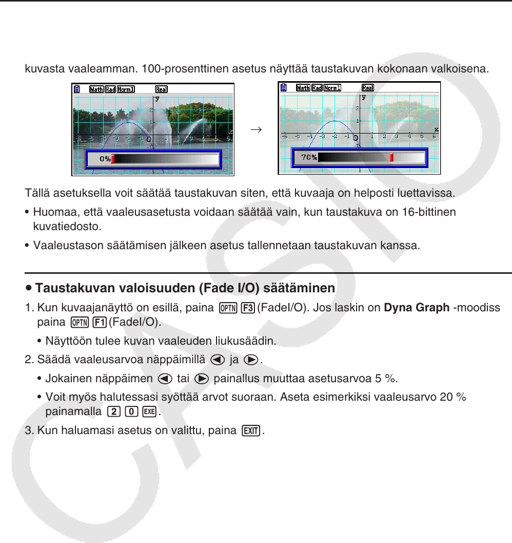 1. Kun kuvaajanäyttö on esillä, paina K3(FadeI/O). Jos laskin on Dyna Graph -moodissa,