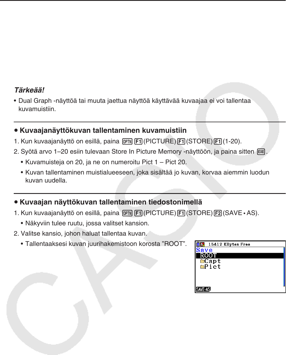 1. Kun kuvaajanäyttö on esillä, paina K1(PICTURE) 1(STORE) 2(SAVE • AS).
