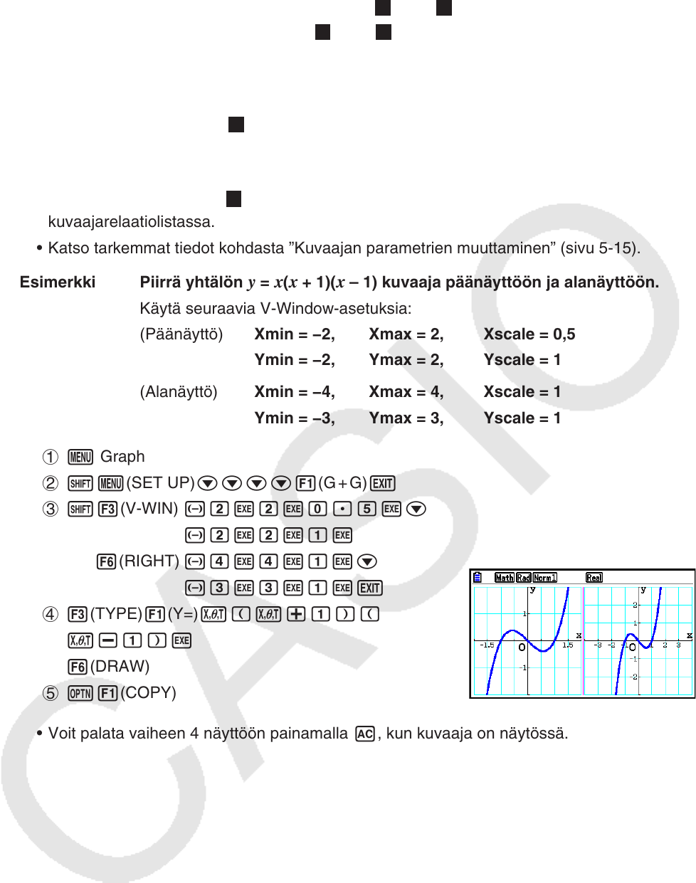 y = x ( x + 1)( x – 1) kuvaaja päänäyttöön ja alanäyttöön.