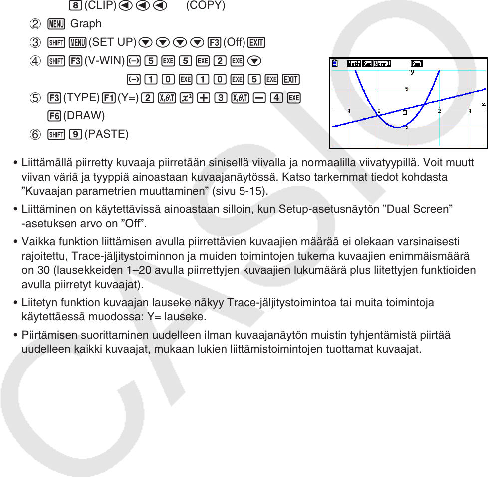 • Liitetyn funktion kuvaajan lauseke näkyy Trace-jäljitystoimintoa tai muita toimintoja