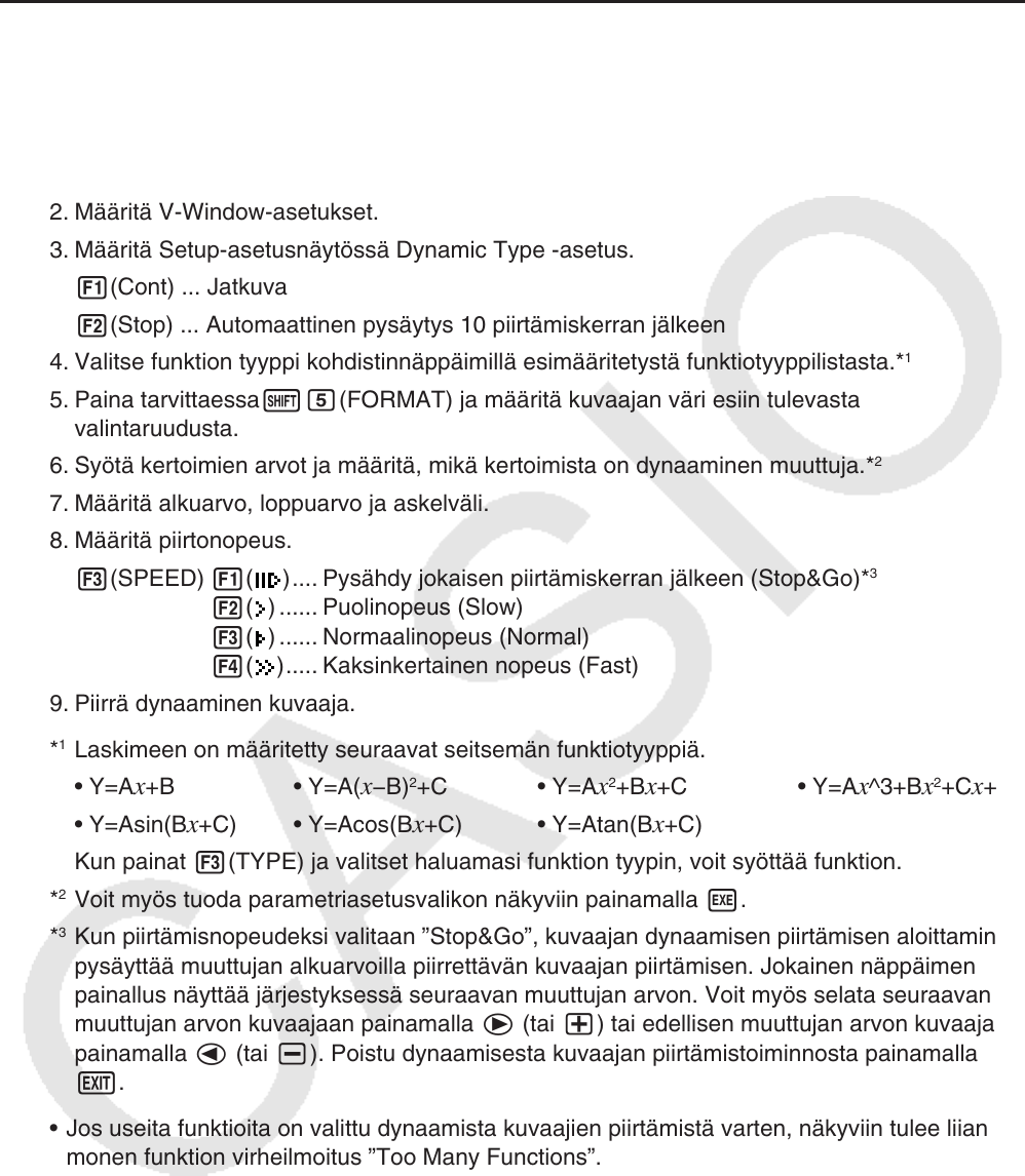• Jos useita funktioita on valittu dynaamista kuvaajien piirtämistä varten, näkyviin tulee liian