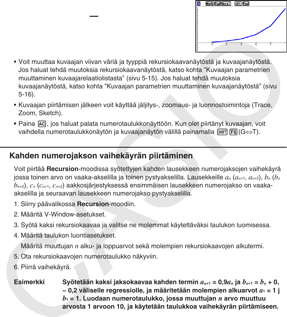 • Voit muuttaa kuvaajan viivan väriä ja tyyppiä rekursiokaavanäytöstä ja kuvaajanäytöstä.