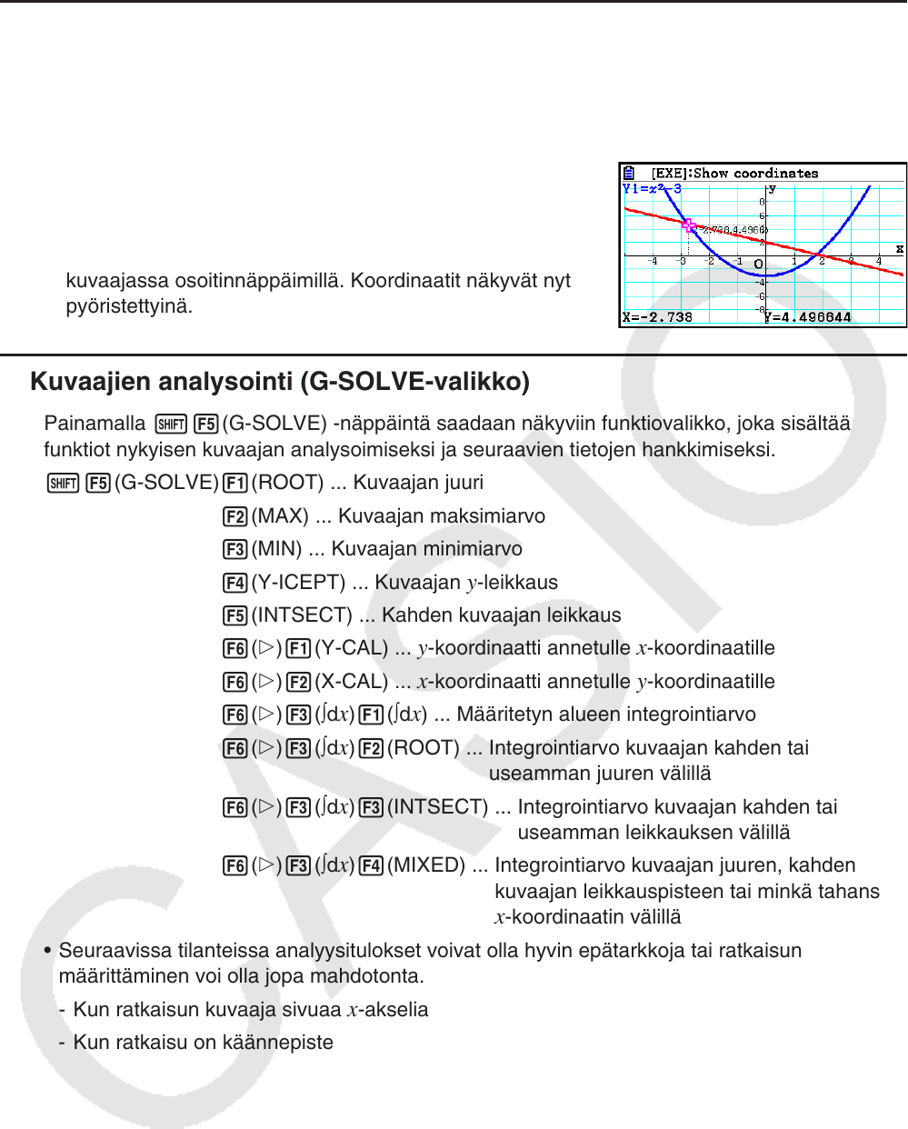 Painamalla !5(G-SOLVE) -näppäintä saadaan näkyviin funktiovalikko, joka sisältää