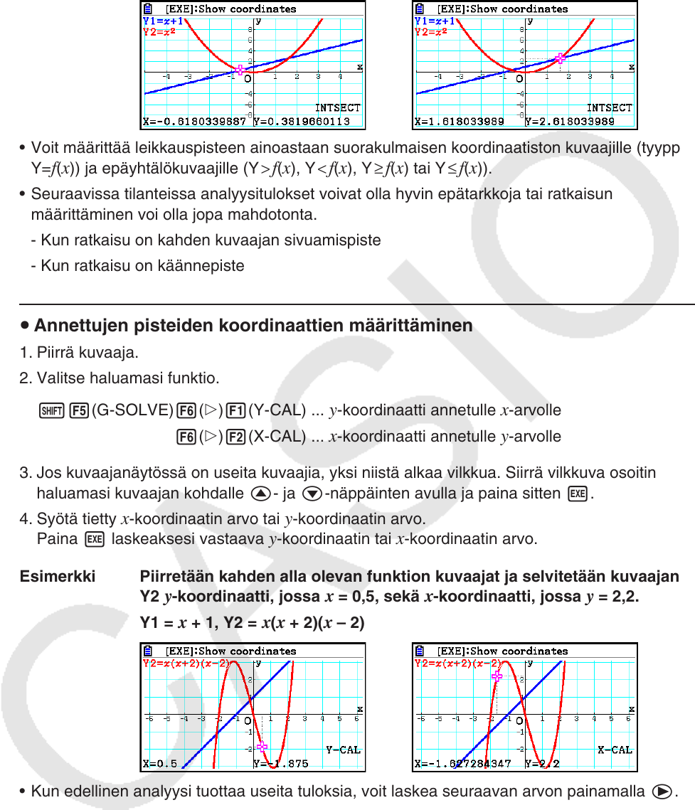 • Voit määrittää leikkauspisteen ainoastaan suorakulmaisen koordinaatiston kuvaajille (tyyppi
