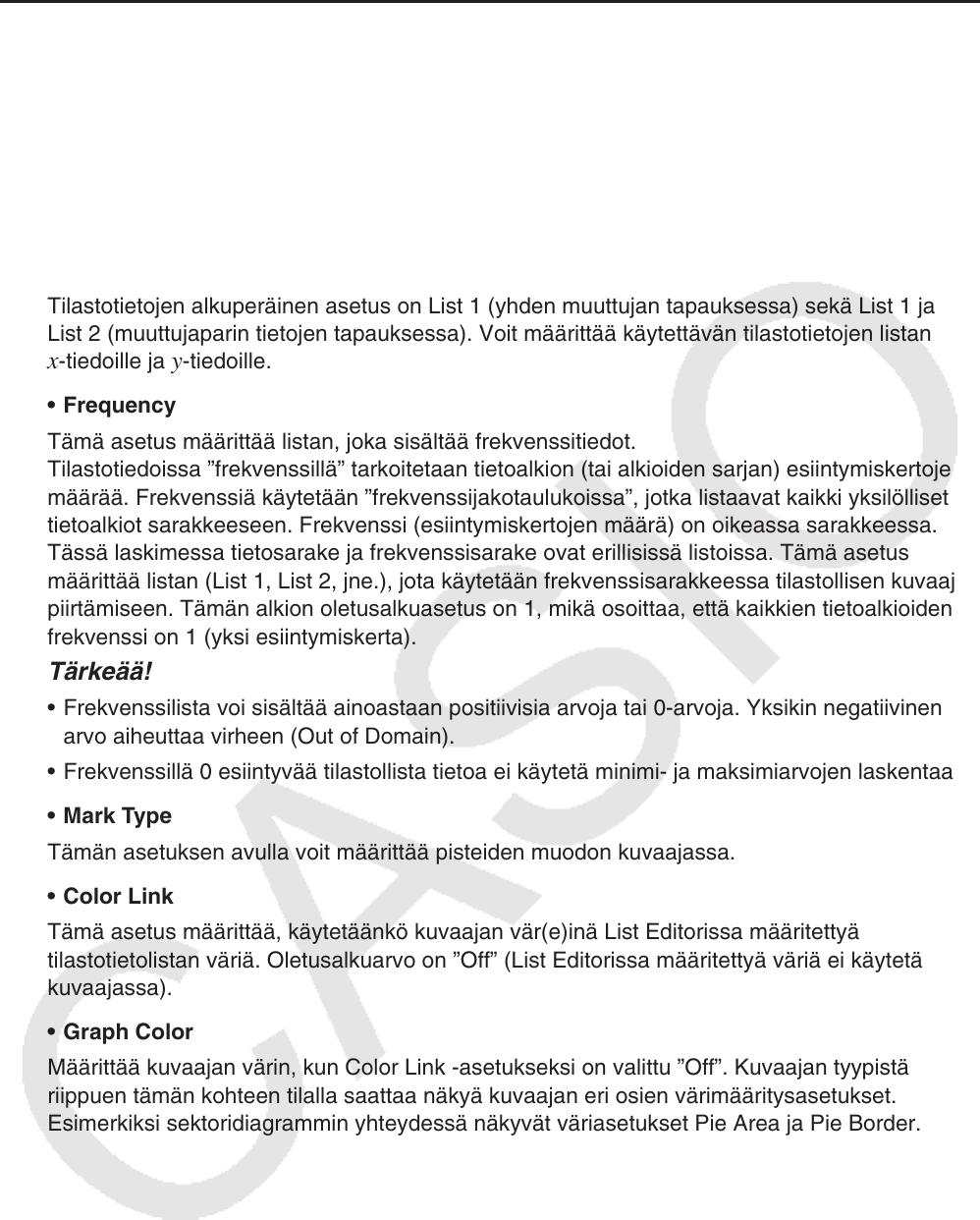 • Frekvenssilista voi sisältää ainoastaan positiivisia arvoja tai 0-arvoja. Yksikin negatiivinen